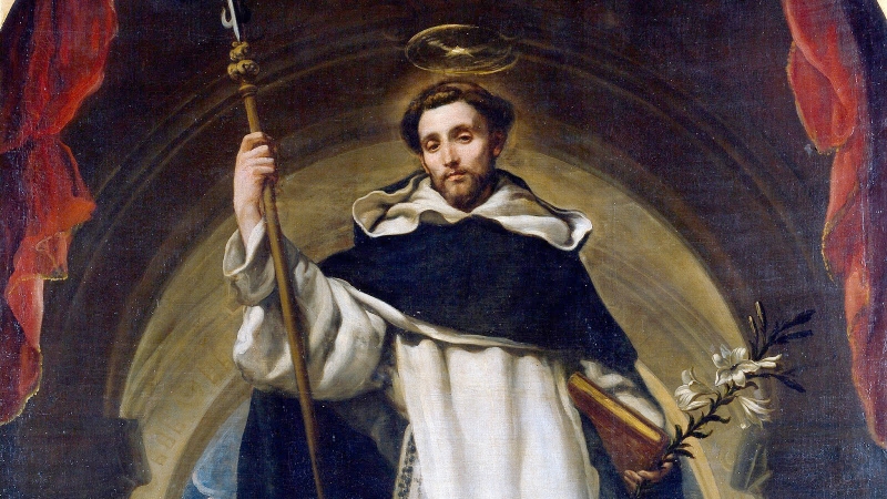 Los biógrafos de Santo Domingo dicen que cierto día el Santo tuvo un sueño en donde Dios iba a desatar su ira contra el mundo, pero vio como la Santísima Virgen señalaba a 2 hombres que con sus obras iban a interceder ante él y calmarían su ira. Uno era él, Domingo, pero el otro era un pordiosero desconocido. Al día siguiente mientras domingo rezaba, entro en el templo un hombre vestido como pordiosero, Santo Domingo corrió a abrazarlo y le dijo: “Los dos tenemos que trabajar muy unidos, para conseguir el Reino de Dios", el pordiosero era nada más y nada menos que San Francisco de Asís.