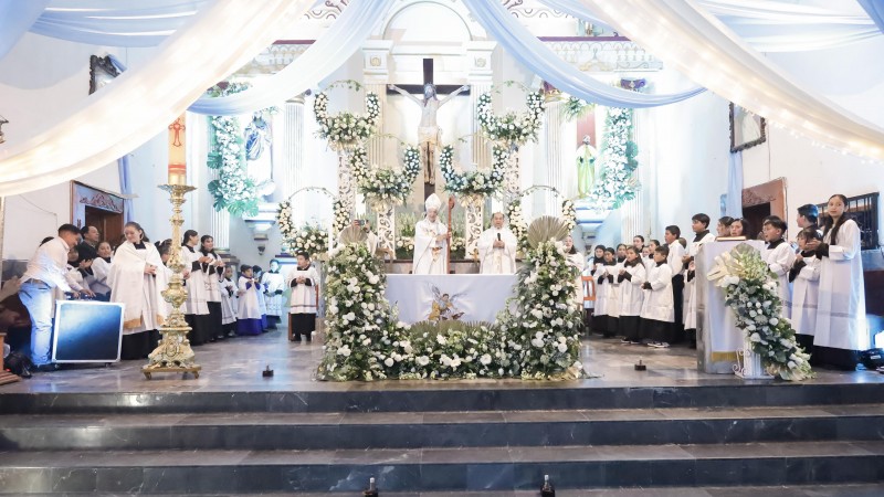 Don Jorge Carlos Patrón Wong presidió la Eucaristía de fiesta patronal a las 6 de la tarde, fue recibido por una multitud de monaguillos y jóvenes que pertenecen a diferentes grupos.