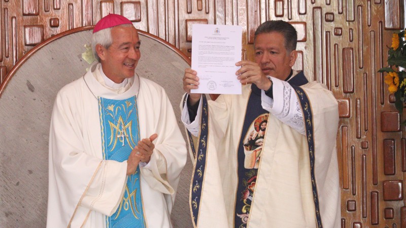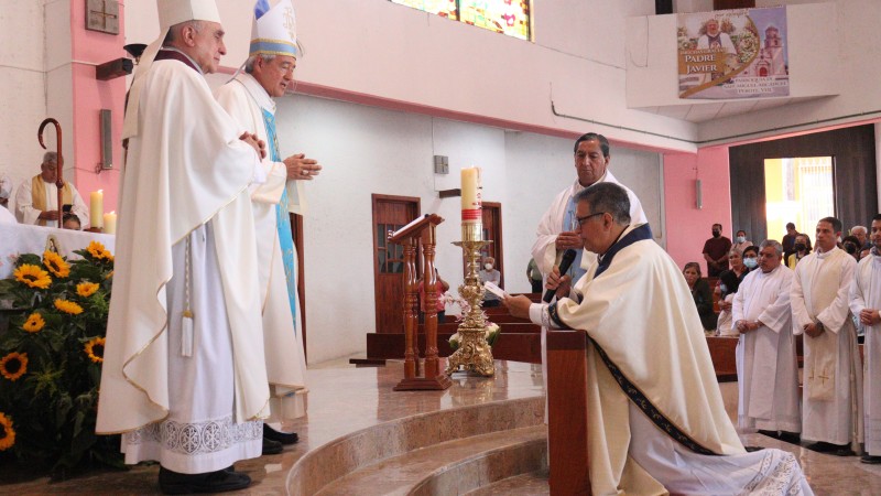 Al finalizar la lectura del evangelio, el padre Enrique Ramos Castro, decano del Decanato Sur, leyó el Nombramiento del padre Javier como párroco de la Basílica menor de Nuestra Señora de Guadalupe. La homilía estuvo a cargo de Mons. Rafael Palma Capetillo quien dijo: “Encontramos en la primera lectura, la figura de Noé que supo llenarse de amor al pueblo de Dios pero, también lleno de la sensatez Nuevos pastores para la Basílica menor en el Dique de las advertencias que Dios nos da. En la figura de Noé encontramos una persona que supo construir un arca de grandes dimensiones, en esa actitud positiva lo tachaban de mal de la mente, en lugar de ver en él un signo de Dios que nos advertía cambiar a tiempo”. “En este día que acompañamos al padre Javier y al padre Luis Donaldo, vemos la figura de Noé en ellos para hacerse responsables de la comunidad a ellos encomendada, si le preguntamos a un párroco sobre el sentimiento del cambio seguramente habrá un doble sentimiento de agradecimiento y de dejar atrás, de dejar atrás un servicio y agradecimiento de un nuevo servicio”.
