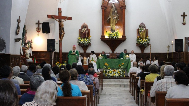 Monseñor invitó a los asistentes a trabajar en equipo con el padre Tomás y guiados por su párroco, el P. Melitón Lagunes.