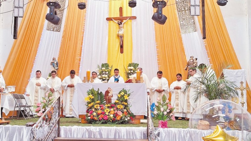 El párroco Carlos Reynaldo Domínguez Aguilar y el padre Uriel González Rosado fueron los sacerdotes que concelebraron la eucaristía junto a los 9 padres recién ordenados.
