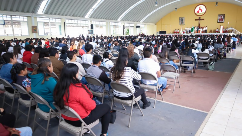Don Jorge Carlos Patrón Wong presidió la Santa Eucaristía a las 9 de la mañana en el auditorio Miguel Sainz, concelebrada por el padre Fabián Morales, sacerdote encargado de apoyar en el año de la catequesis y evangelización.
