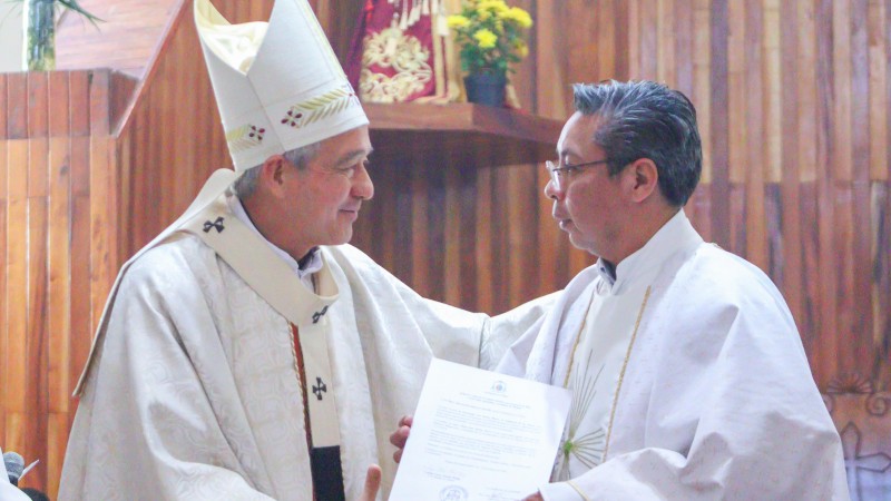 Concluida la homilía, el padre Aarón realizó su profesión de fe y juramento de fidelidad, posteriormente fue acompañado por el padre Fabián Morales, del decanato de Teoixhuacan, a los lugares santos del templo: Altar, ambón, sagrario, pila bautismal, campanario, confesionario y finalmente, la sede.